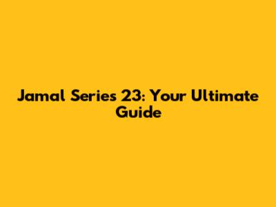 Jamal Series 23: All You Need To Know