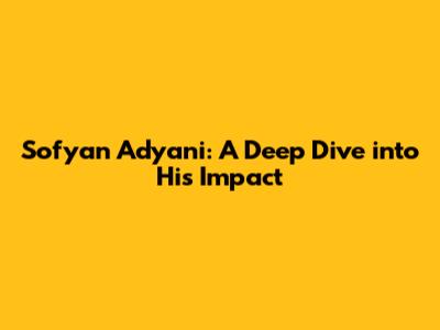 Sofyan Adyani: A Deep Dive Into His Impact